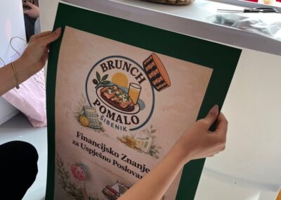 Na sajmu su sudjelovale brojne vježbeničke tvrtke kao i naša tvrtka Brunch Pomalo koju su osnovali učenici 3.A razreda , a predstavnice su bile učenice Cvita Jurić, Matea Juričev i Marta Klarić u pratnji svojih nastavnica Branke Dželalije i Vesne Pravdić. Tvrtke su predstavile svoje proizvode i usluge putem promotivnih materijala, prezentacija, digitalnog marketinga i izravne komunikacije s posjetiteljima. Učenici su imali priliku simulirati stvarno poslovno okruženje – pregovarati, sklapati poslove i promovirati svoje ideje.
