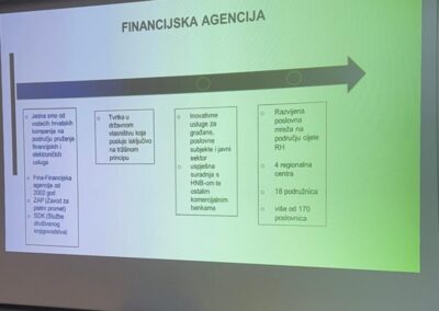 Tijekom posjeta učenici su se upoznali s osnovnim djelatnostima i poslovanjem FINA-e, njezinom ulogom u financijskom i gospodarskom sustavu te uslugama koje pruža građanima, poduzetnicima i državnim institucijama. Poseban naglasak stavljen je na platni promet, financijske usluge te digitalizaciju poslovnih procesa po uzoru na financijsko poslovanje zemalja članica EU.