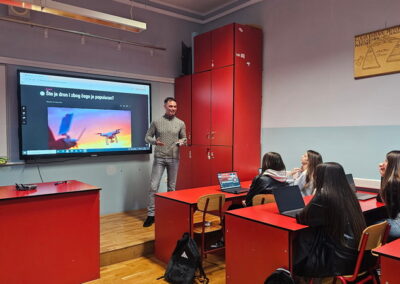 Tijekom aktivnosti učenici su se upoznali s time što su dronovi i kako rade, vrstama bespilotnih letjelica te primjerima njihove primjene u obrazovanju, zaštiti okoliša, sigurnosti i medijima. Kroz prezentaciju i raspravu potaknuto je kritičko promišljanje o prednostima i odgovornoj uporabi novih tehnologija.